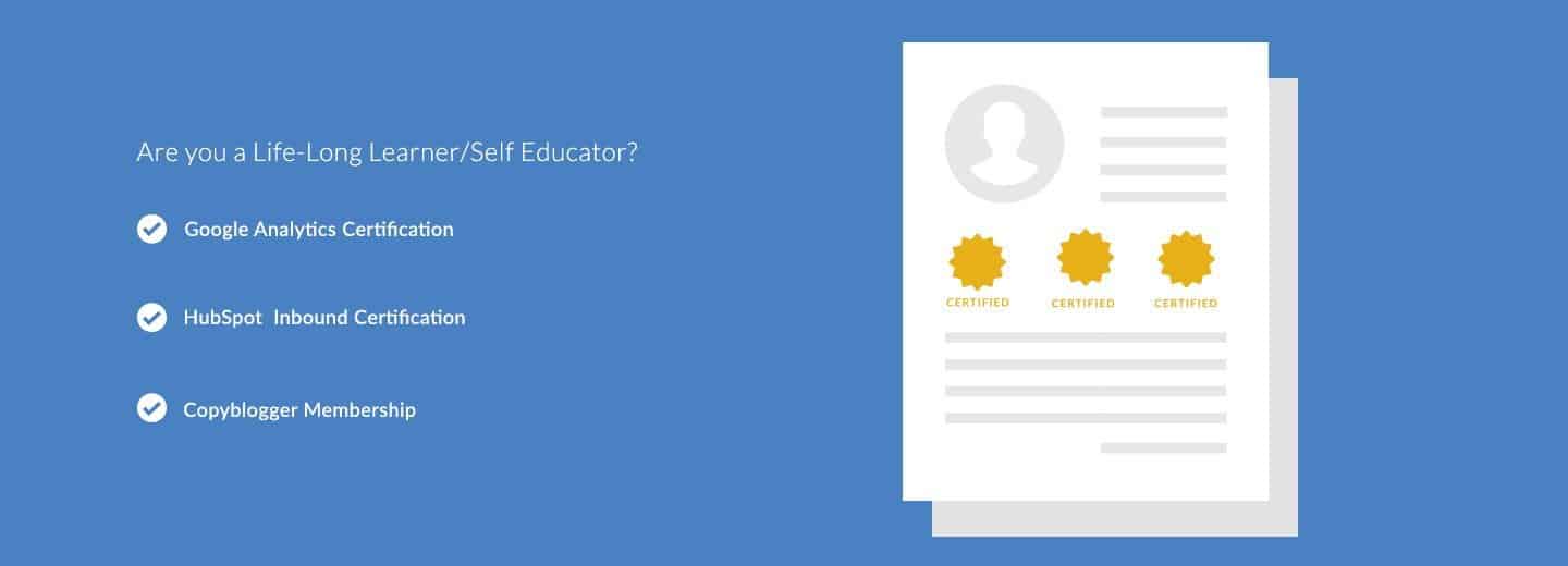 Digital marketing changes at the speed of light. To be successful, you need to be a self-educator that builds self-education into your daily practice and ritual. We aren’t just looking to see what you’ve been formally taught, we are interested in what you do day-to-day to better yourself.